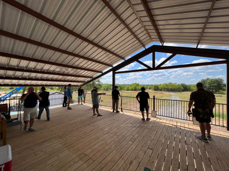 Our property consists of two incredible lodges for our owners and our guests. The main lodge consists of 6 bedrooms, 5 bathrooms and is over 8500 SF. Inside is the "cantina" where we gather for entertainment, meals and our evening hunting draw for the next day's hunt. When sunset rolls around you certainly don't want to be anywhere but upstairs at the "eagles nest rooftop bar and patio" for happy hour and incredible Texas sunsets. The family room offers a massive fireplace and oversized leather couches for relaxing and sharing hunting stories. For those who want a little extra competition, we have a poker room, massive 30x60 putting green and finishing up a 4-hole short course, where you can practice your short game. Additionally, for firearm enthusiasts, we offer a private 12 station sporting clay course, with a 150-yard rifle range and a 15-yard pistol range that are the ideal setting to hone your shooting skills and enjoy some friendly banter with your hunting companions.